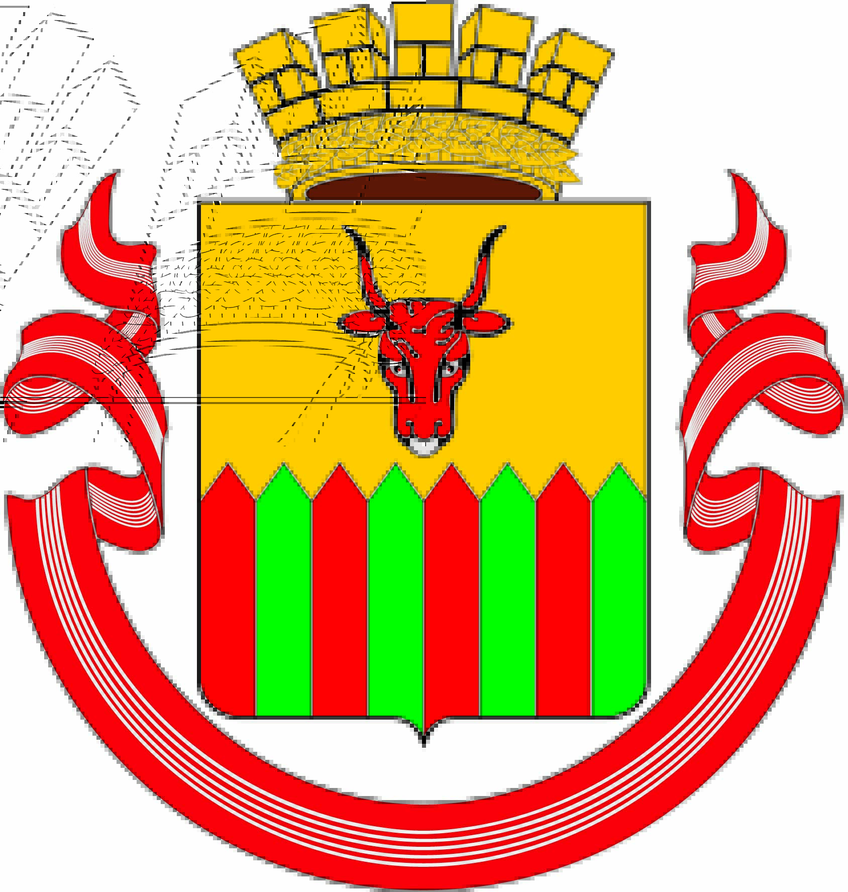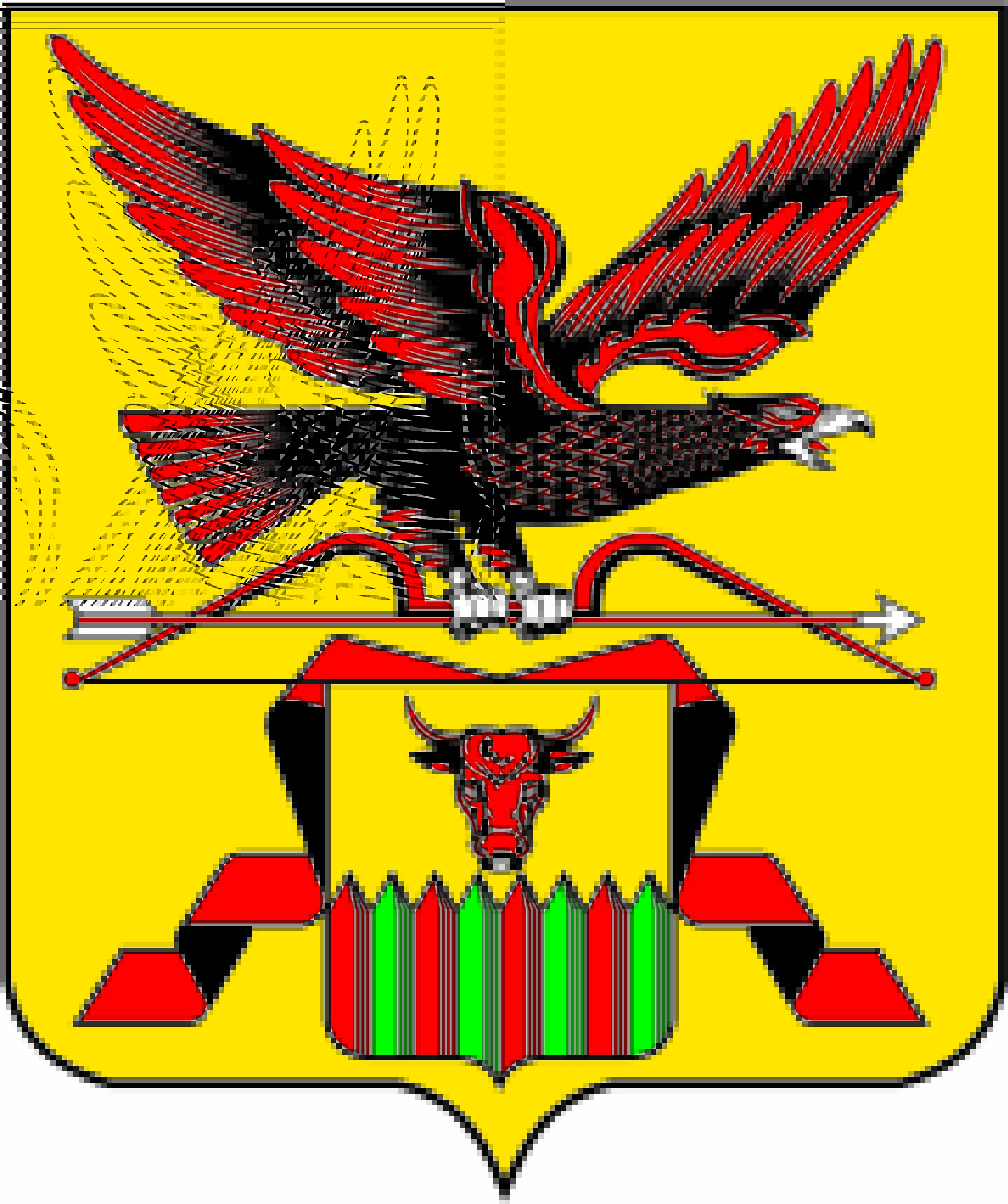 В геральдическом значении жёлтый цвет — символ богатства и справедливости, зелёный — надежды, радости и изобилия, красный — мужества и неустрашимости.