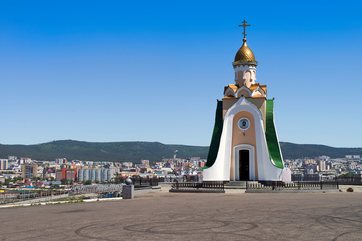 Панорама города Читы и часовня благоверного князя Александра Невского