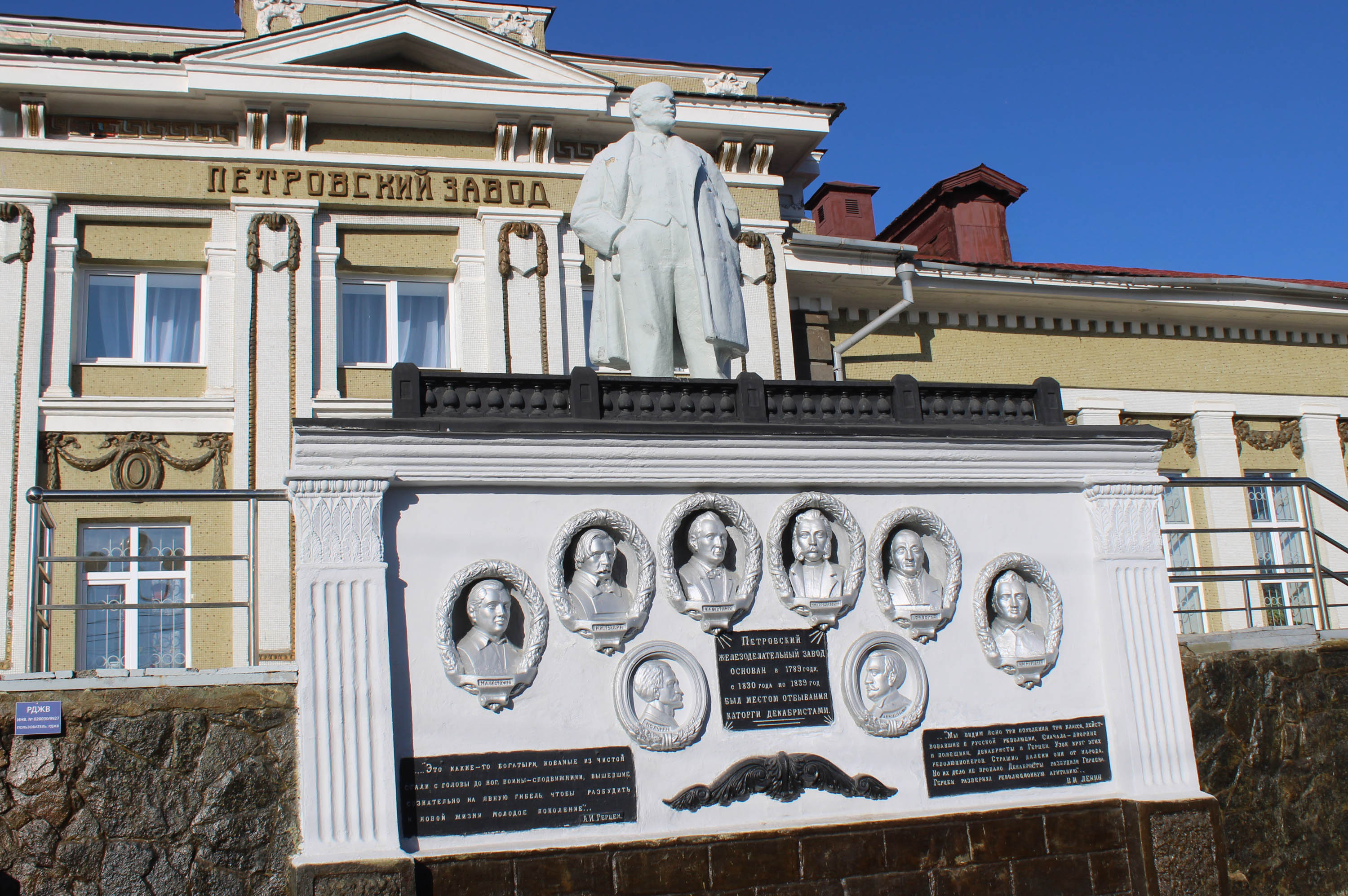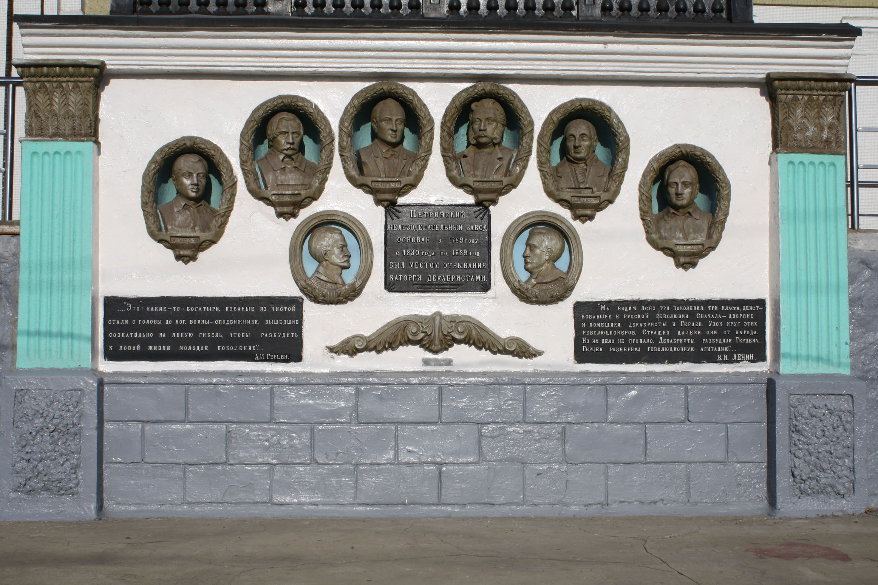 Портал с барельефами декабристов на станции Петровский Завод
