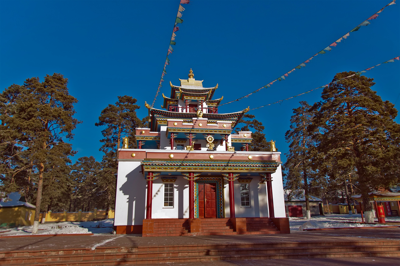 Дацан в селе Амитхаша — крупнейший буддийский центр Забайкалья/ С XIX века он прославился как ведущий образовательный центр тибетской медицины и астрологии. Возрождённый после разорения и пожара, он и сегодня готовит лам в своей академии.