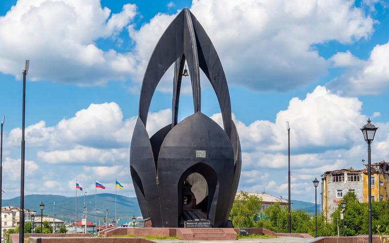 Монумент, посвящён памяти 40 тысяч уроженцев Бурятии, не вернувшихся с полей сражений. У подножия стелы застыли в бронзе русский и бурятский солдаты — символ боевого братства и единой судьбы.