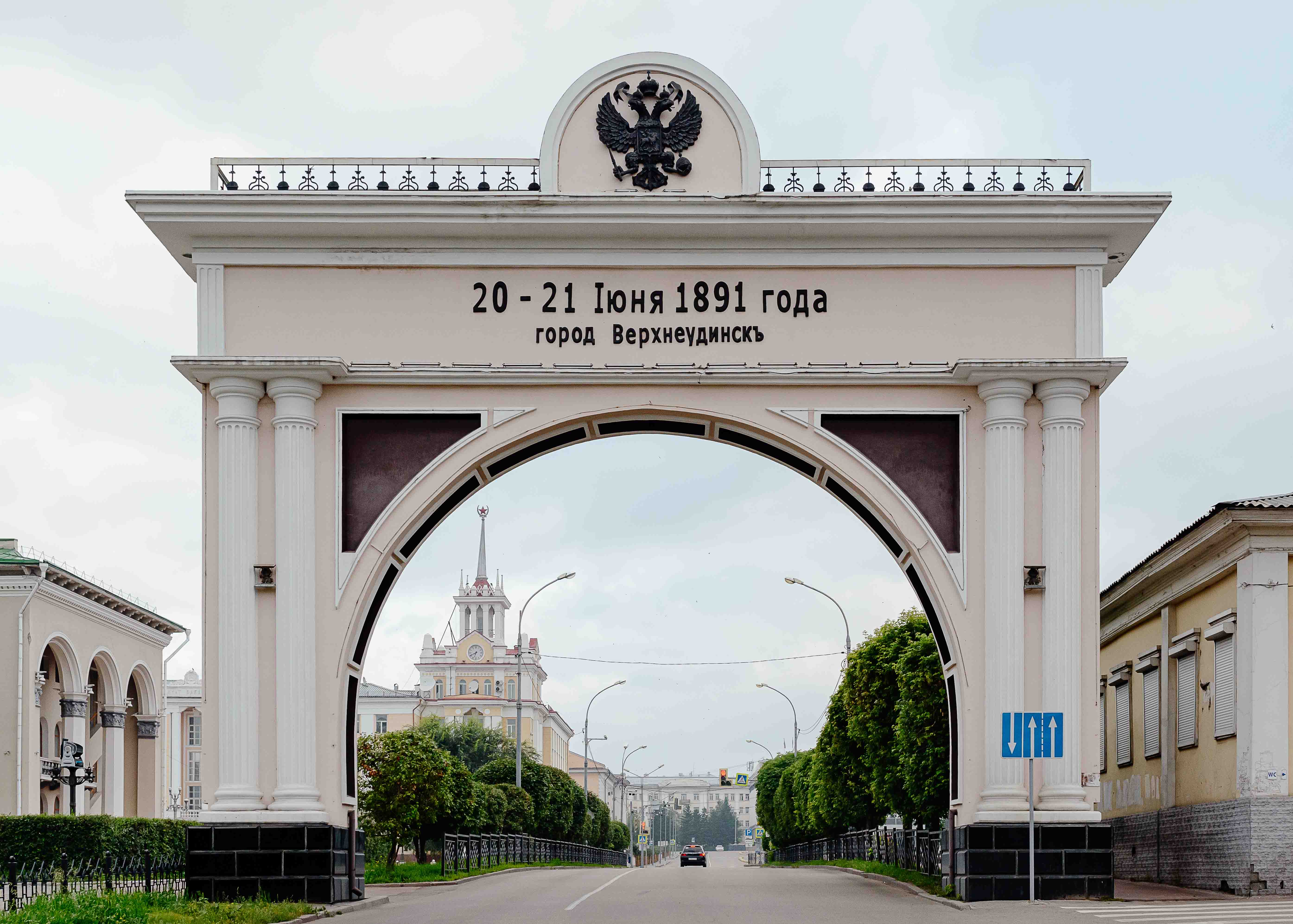 Далее следует идти по направлению к Одигитриевскому собору, который хорошо виден уже от здания театра. Спускаясь по улице Ленина к историческим кварталам, можно увидеть возвышающуюся над улицей Триумфальную арку, установленную в честь приезда в город в конце XIX века цесаревича Николая, будущего императора Николая II. Невдалеке находится памятник, посвящённый верхнеудинскому купцу. Монумент отдаёт дань уважения представителям этого сословия, столь много сделавшим для города в XIX — начале XX века.
