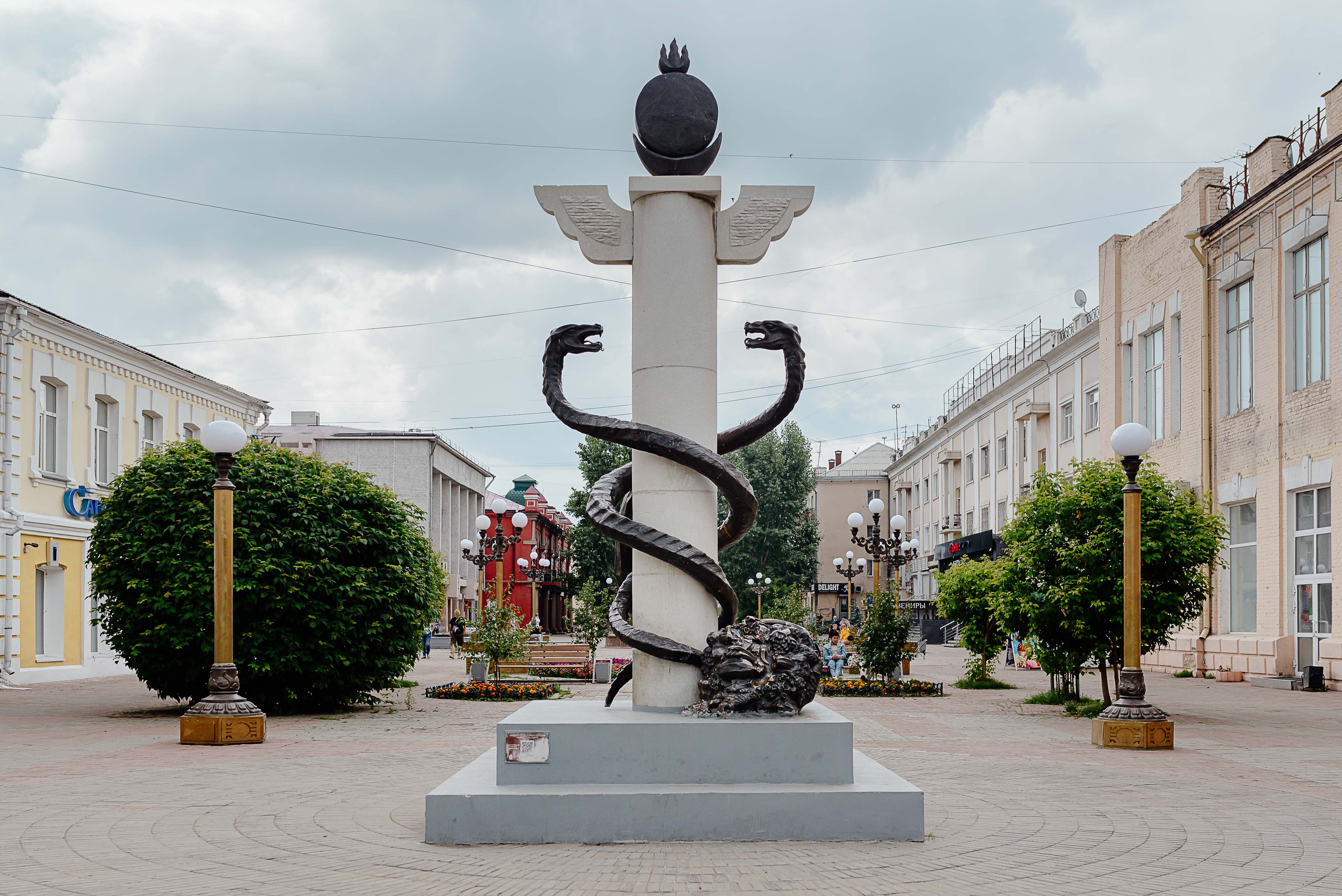Скульптура «Жезл бога торговли Меркурия и рог изобилия» на эколого-краеведческой тропе «Мой любимый город». 2021
