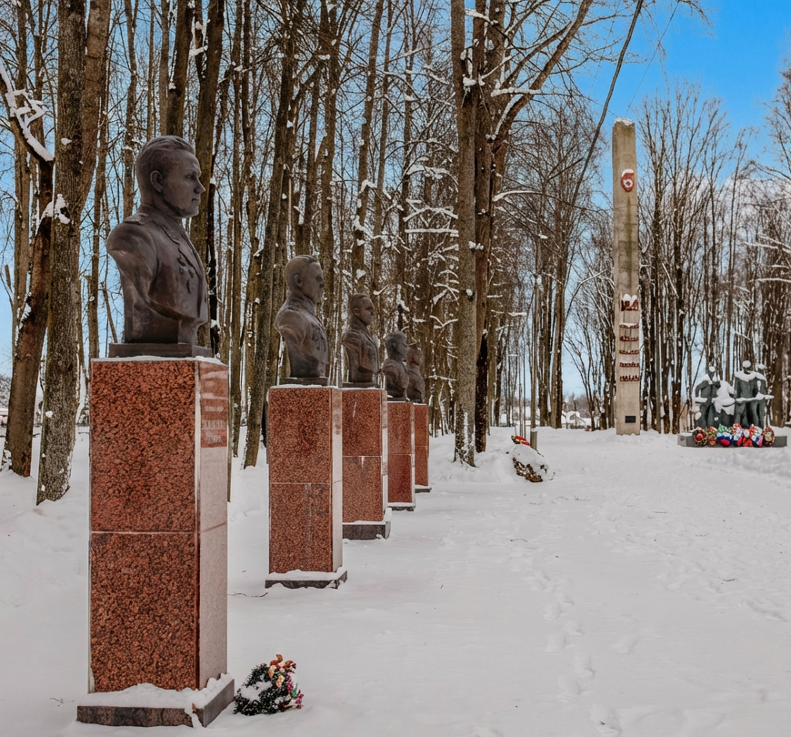 Среди обретших здесь свой вечный покой Герои Советского Союза Ю. С. Беленогов и Н. И. Кошелев, танкисты, павшие при освобождении Ельнинского района. Ещё один Герой Советского Союза И. Ф. Зуев, получивший это высокое звание за освобождение Гомельской области Белорусской ССР, был здесь похоронен после своей смерти в 1977 году.