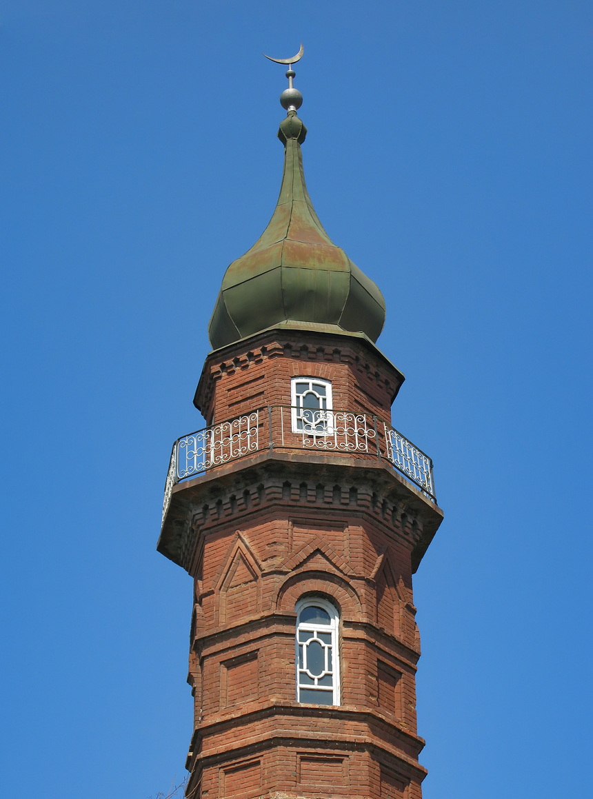 Двухэтажное кирпичное здание возведено на ленточном бутовом фундаменте. По одной из исламских архитектурных традиций на его крыше установлен восьмигранный минарет — башня, с которой оглашается призыв к молитве. Он был открыт в 1995 году и заменил собой старый, не подлежавший восстановлению. В верхнем ярусе минарета устроена обходная галерея, на которую ведёт внутренняя винтовая лестница. Минарет увенчан луковичной главкой с полумесяцем. Такие же главки на четырёхгранных основаниях установлены по углам здания.